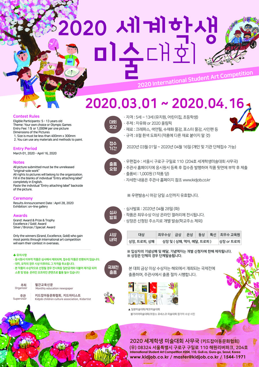 ● 참가등록 : www.kidjob.co.kr (2020 세계학생미술대회 사무국)